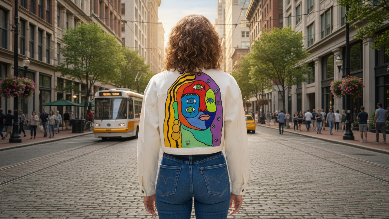 PEARLS ON THE COLORFUL FACE | Hand-painted Denim Jacket