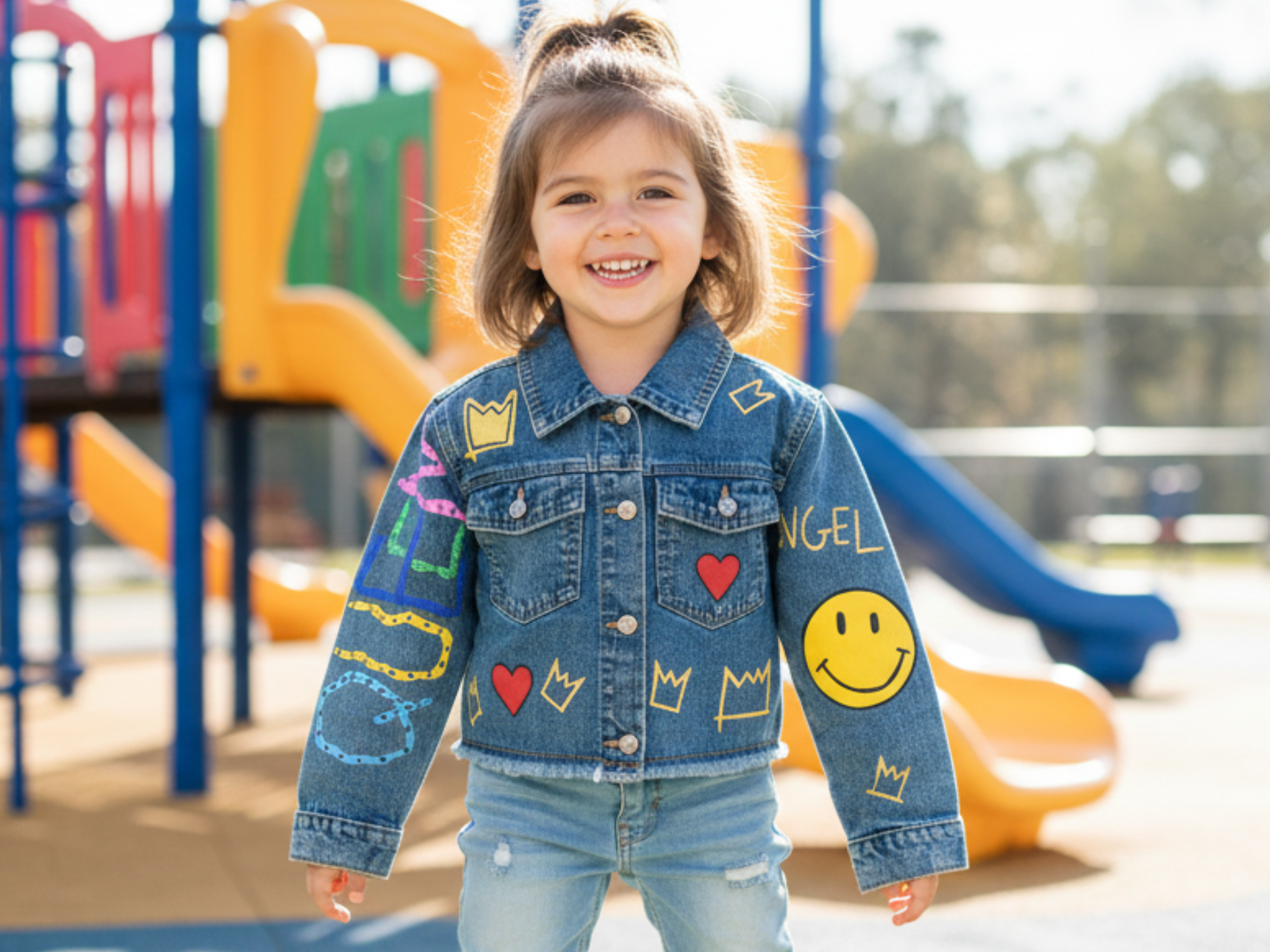 THE COLORFUL FACE FOR KIDS | Hand-Painted Denim Jacket